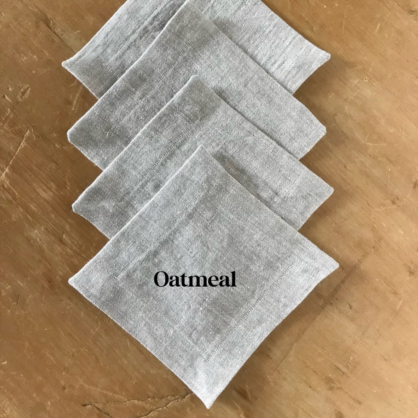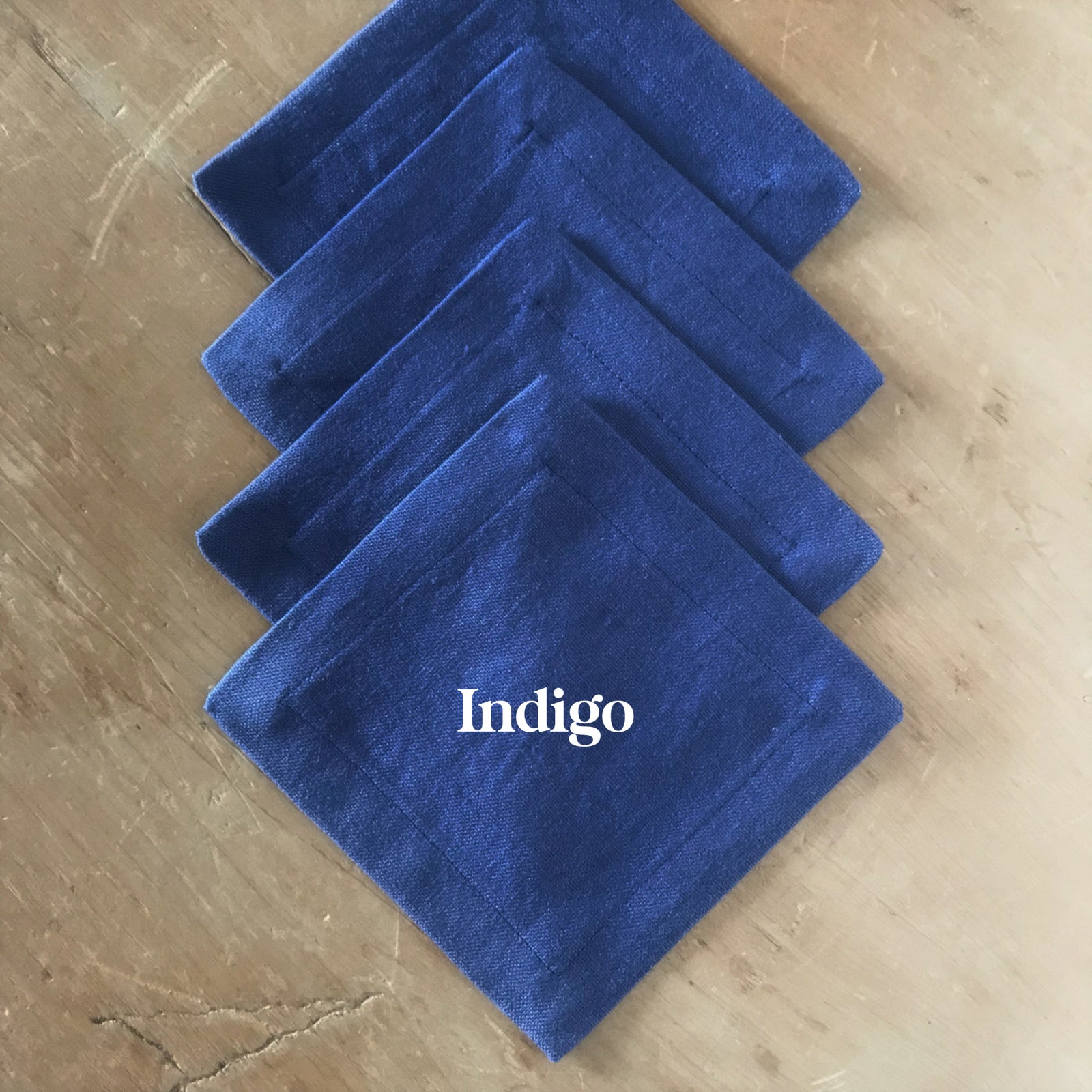 Lavender and Leather linen cocktail napkins, set of four. Available in Almond, Indigo, Silver Grey and Oatmeal.