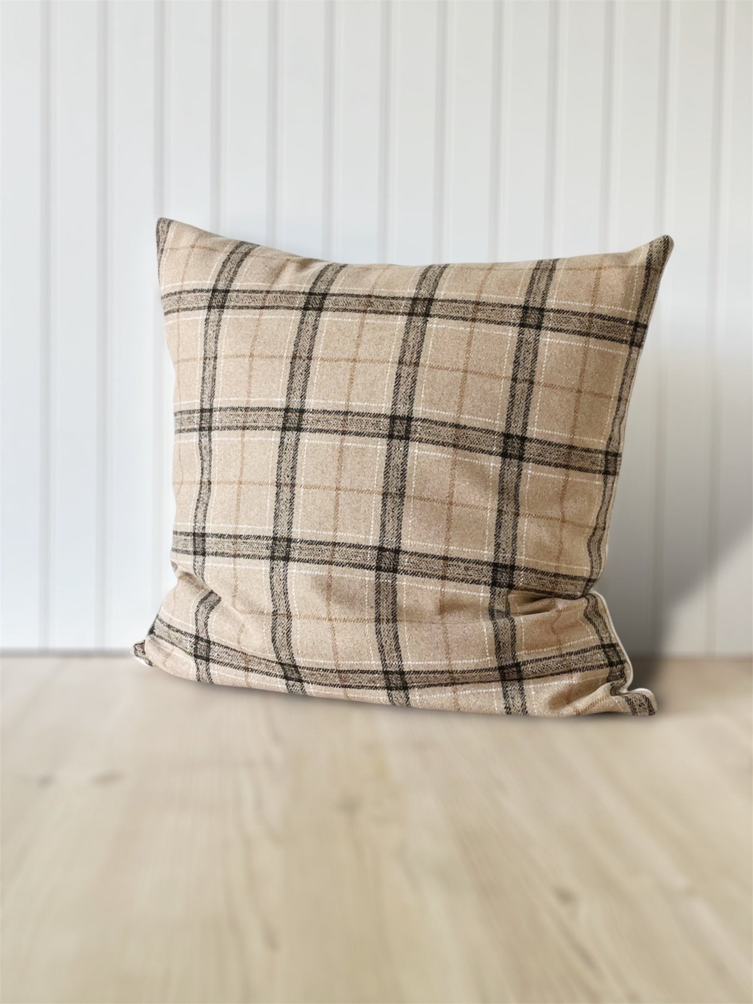 Sterling camel plaid cushion covers are a great way to cozy up your decor for autumn and winter. All Lavender and Leather cushion covers are made onsite from new fabric and fit standard insert sizes. The size described is the size of the cushion insert, not the size of the cover. We make our covers slightly smaller than the insert size, to give you a plump cushion with a snug fit.